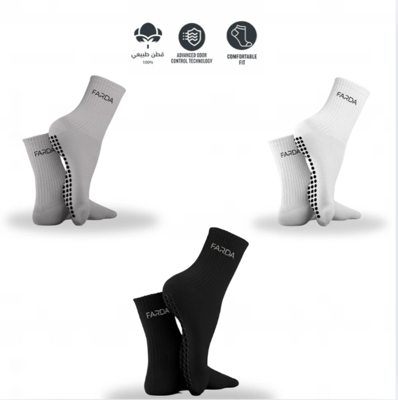 تم تصميم هذه الجوارب لتكون الخيار الأمثل لمن يبحث عن الجمع بين الراحة، الأداء، والأمان داخل المنزل، في ‏المسجد، أو أثناء التمارين الخفيفة  فهي‎:‎
